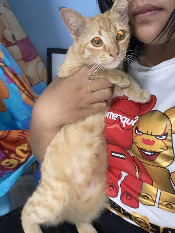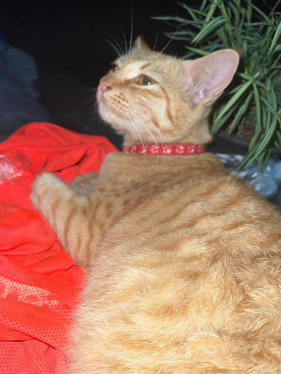 รอยตำหนิ: น้ำหนักประมาณ 3.5 ใส่ปลอกคออยู่ มีป้ายชื่อสีชมพูชื่อเฮงหาย เเถวปากทางวัดจันทราราม น้องเชื่อง