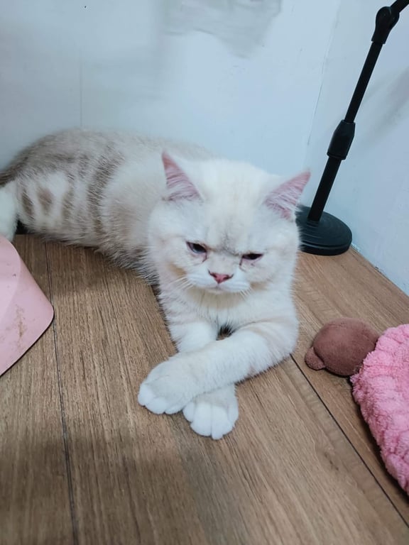 รอยตำหนิ: ตาสีฟ้าอ่อนมีปลอกคอสีแดง ถ้าใครพบเจอมีสินน้ำใจให้