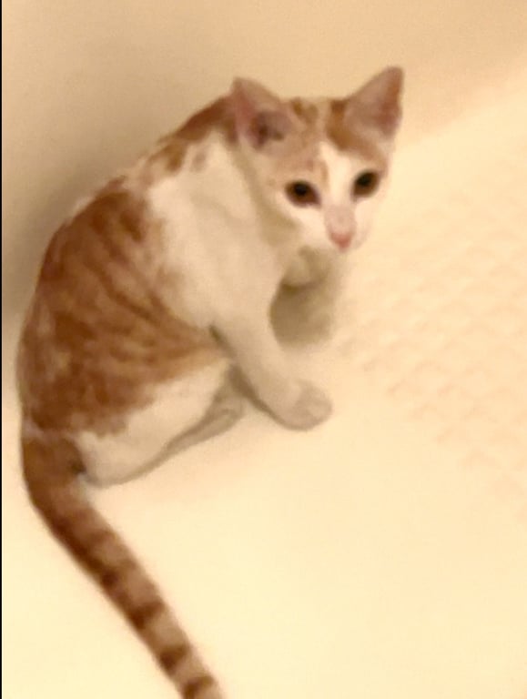 รอยตำหนิ: ขายาว หน้าขาวหัวส้ม ตัวขาวหมดยกเว้นหลังลายส้ม หางลายส้มน้องมอมแมมอายุประมาณ 6-7เดือน (ณ วันที่ 12/2/2566) น้องเป็นแมวไทยทั่วไป รับน้องมาเลี้ยงจากข้างนอกตั้งแต่ยังเล็กๆ ตอนนั้นพาไปหาหมอบอกว่าน้องอายุได้เดือนสองเดือน เลี้ยงมาได้เกือบครึ่งปีแล้ว น้องนิสัยดี เชื่อง แต่น่าจะกลัวคนแปลกหน้าและสัตว์อื่นๆ น้องไม่ค่อยชอบอาหารเม็ด กินเก่ง ตัวเริ่มสูงแล้ว