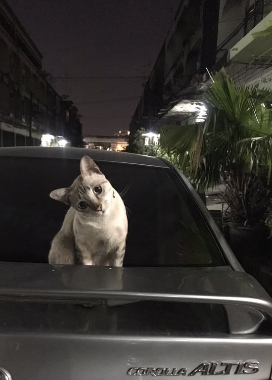รอยตำหนิ: หางกุด ตาสีฟ้า หนังตาชั้นที่ 3 เคยขาดข้างนึงจะเป็นเสี้ยวๆ เขี้ยวมี 2 เขี้ยวใส่ปลอกคอโบว์สีฟ้า น้องเชื่องคนมาก ปกติจะไปไม่ไกลจากบ้าน กลับมากินข้าวตลอด ไม่แน่ใจว่าติดรถคนละแวกบ้านไปหล่น หรือ มีคนอุ้มไปรึเปล่า