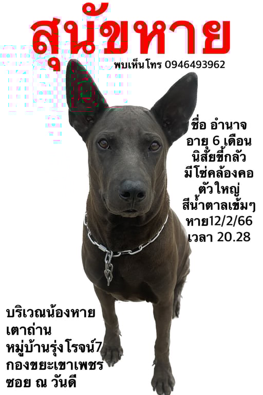 รอยตำหนิ: เล็บดำ ลิ้นมีปานดำ โซ่คล้องคอ ขนกำมะหยี่