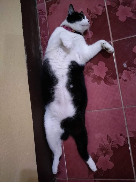 รอยตำหนิ: มีปลอกคอสีส้ม กระดิ่งที่คอสีส้ม ตัวอ้วนมีปลอกคอสีส้ม กระดิ่งสีส้มค่ะ น้องเป็นแมวไทยผสมเปอร์เซีย สีขาวดำ ทำหมันแล้ว ตัวอ้วนค่ะ