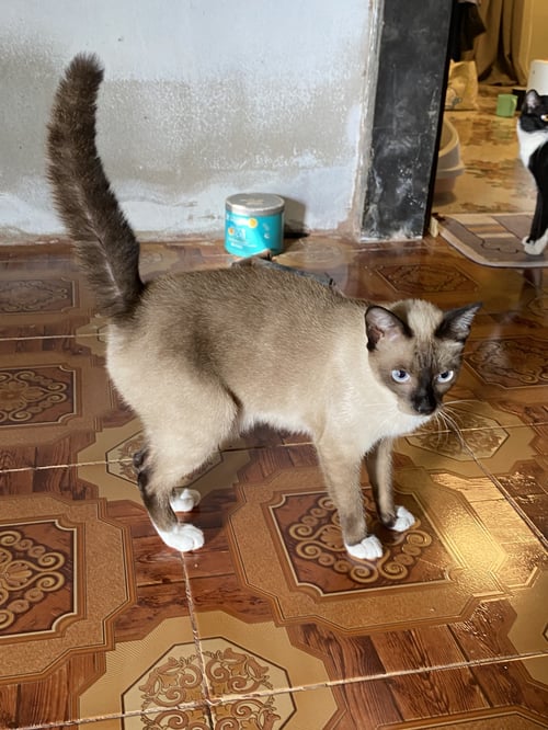 รอยตำหนิ: ปลายเท้า4ข้างขาวพุ้งย้วยคางด้านล่างแต้มขาวนิดๆหางตรงตาสีฟ้า1ปี2เดือน