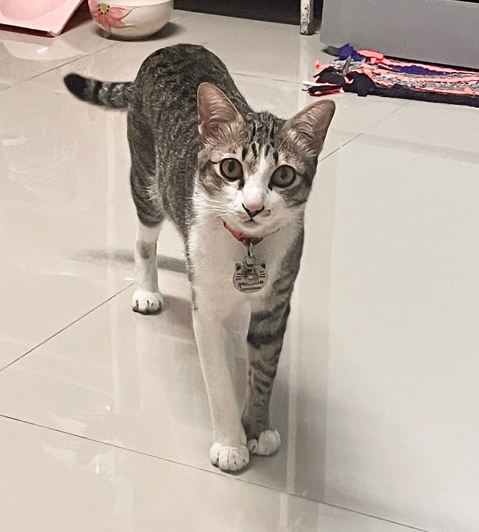รอยตำหนิ: จมูกด้านซ้ายมีไฝ ขาขวาสีขาว ซ้ายจะเป็นลายน้ำหนัก 5 กกปลอกคอสีแดงกำมะหยี่ กระดิ่งสีแดงป้ายชื่อสลักชื่อ สุขภะโชค พร้อมเบอร์โทรเจ้าของ