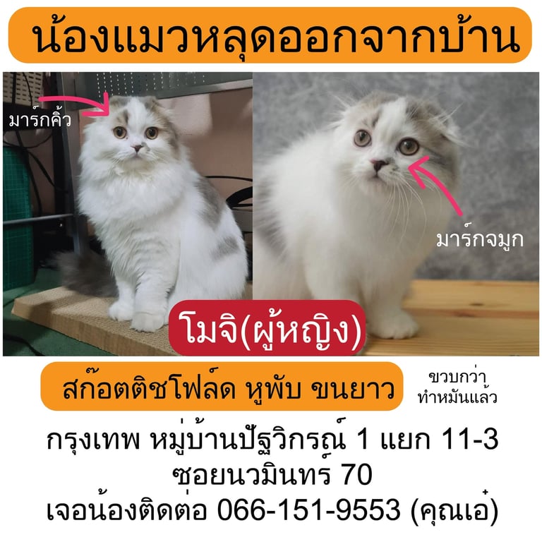 รอยตำหนิ: หูพับ มีมาร์กสีจมูก และคิ้ว น้ำหนักประใาณ 3.4 กิโล