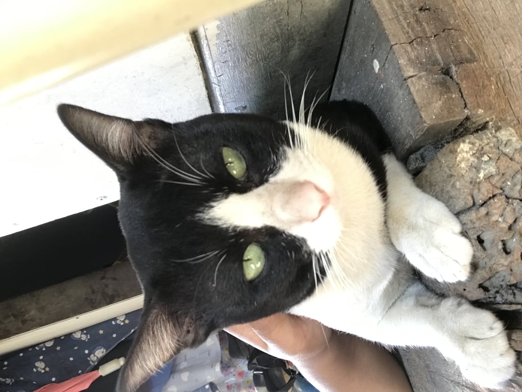 รอยตำหนิ: ขาขวาด้านหลังกระเพก ใช้งานได้แต่ไม่ค่อยปกติไม่มีปอกคอ อาศัยอยู่หลังหอN&N Apartment แมวขี้กลัว เจอแมวตัวอื่นจะร้องเสียงดัง