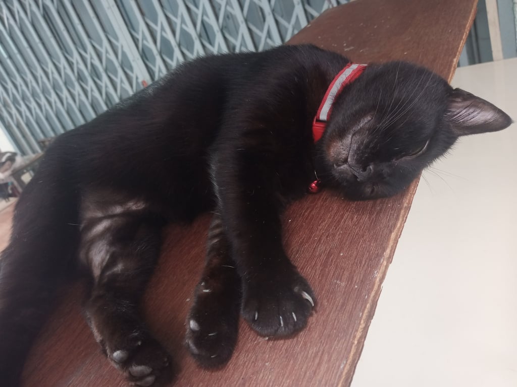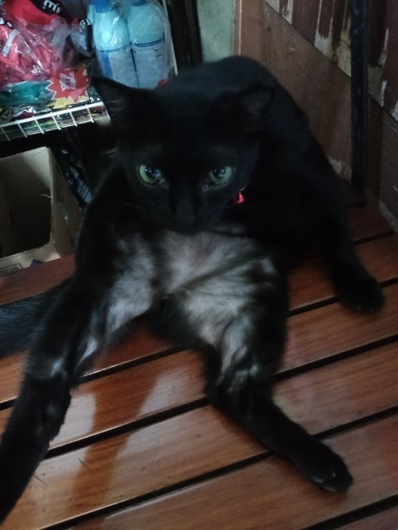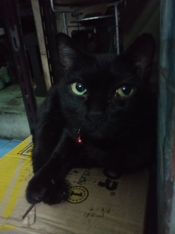 รอยตำหนิ: ปลายหูข้างนึงจะพับลงนิดหน่อย หางยาวกวักเข้ามีปลอกคอสีแดงแถบเรืองแสง