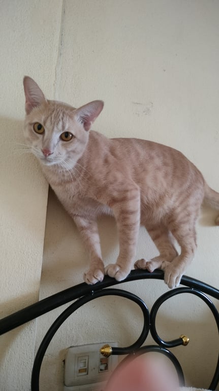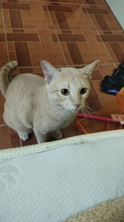 รอยตำหนิ: หลังใบหูมีตุ่มเล็กไปอยู่1 ตุ่ม ไม่มีปอกคอ ขี้กลัวคน เสียงดัง บริเวณหางและก้นโดนโกนขน เนื่องจากเพิ่งทำหมันมาได้3 อาทิตย์ อายุ 1ปี กว่าๆ ตัวใหญ่ น้ำหนัก 5-6กิโลมีเงินรางวัลนำส่งให้