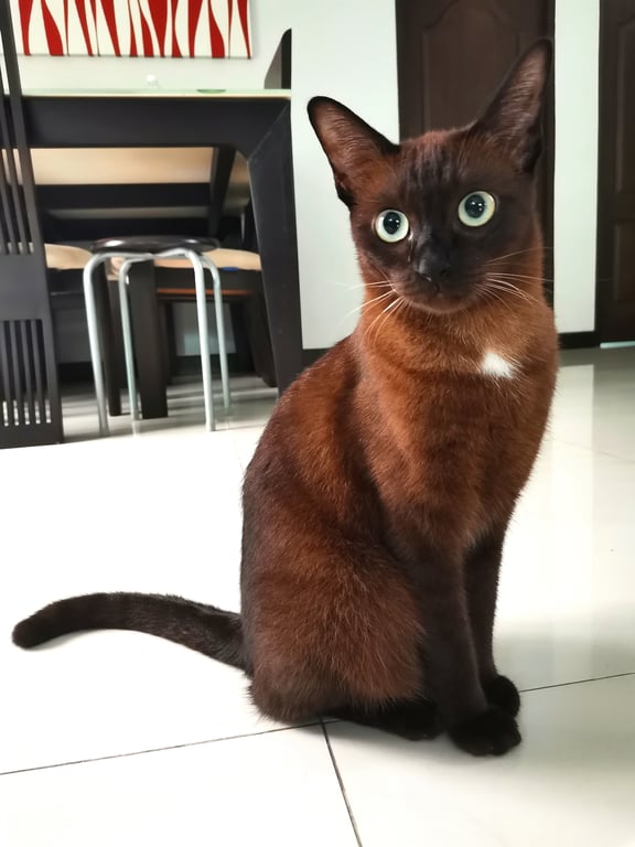สี: แมวเบอร์มีสสีน้ำตาลเข้ม ตาสีเหลืองแต่บางครั้งถ้า