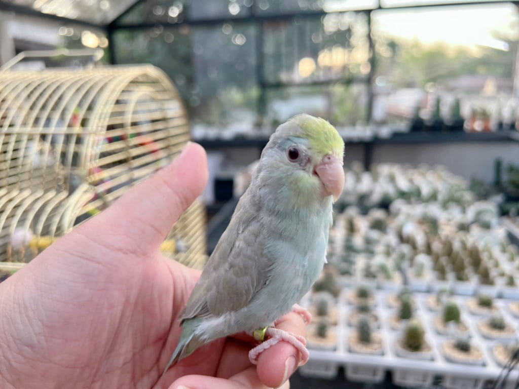 สี: สีฟ้าปนเทา ตาสีแดง หัวติดสีเขียวนิดหน่อย