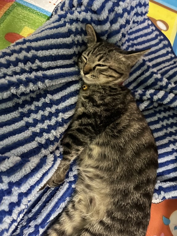 รอยตำหนิ: ปลอกคอสีชมพู ตัวอักษรกลับหัว กระดิ่งสีเหลือง