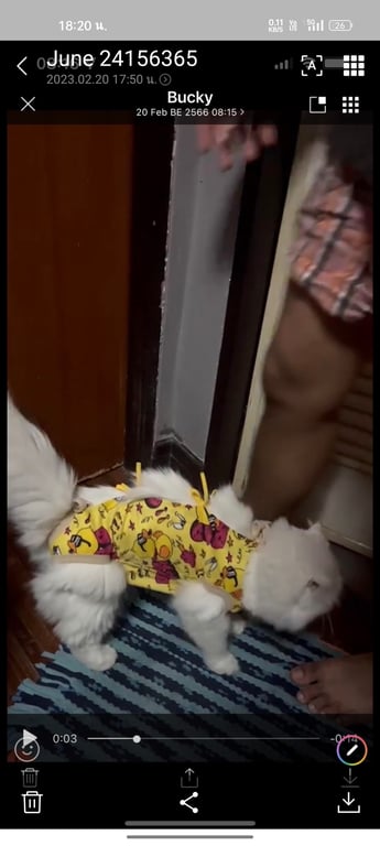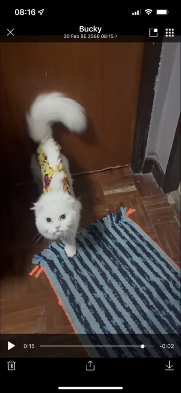 รอยตำหนิ: ตัวยาว ขนยาว ตาสองสีน้องเพิ่งทำหมันเมื่อ สองวันก่อนที่จะหาย ยังคงใส่เสื้อกันเลียเเผลสีเหลือง ตามรูป