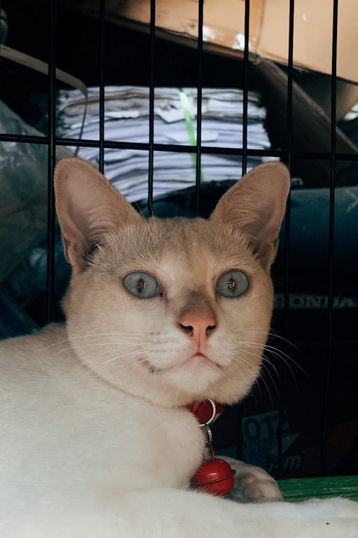 รอยตำหนิ: หนักประมาณ 3-4 โล ตาสีฟ้า2ข้าง ตรงหูสองข้างสีครีมอ่อนๆ หางมีสีครีมอ่อนๆปนอยู่
