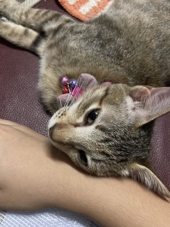 รอยตำหนิ: ตัวเล็ก ใส่ปลอกคอสีครีมมีแถบสะท้อนแสง(สีเทา)