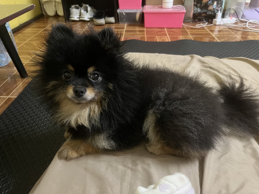 สี: ขนดำ มีคิ้วน้ำตาล มีถุงเท้าน้ำตาล