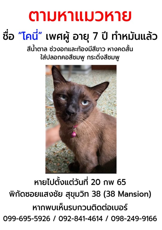 รอยตำหนิ: อกขาว หางสั้นคด7ปี