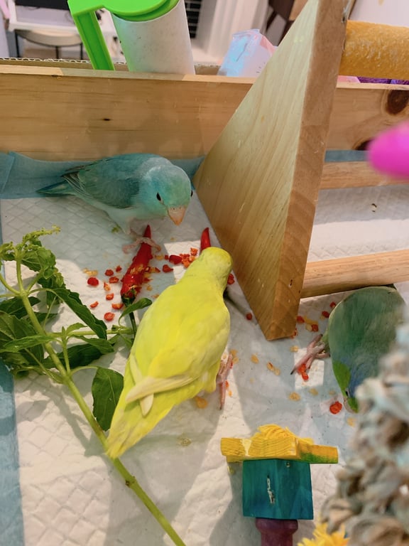 สี: สีฟ้า แก้มอมเขียว หัวท้ายทอยมีลายจุดขาว