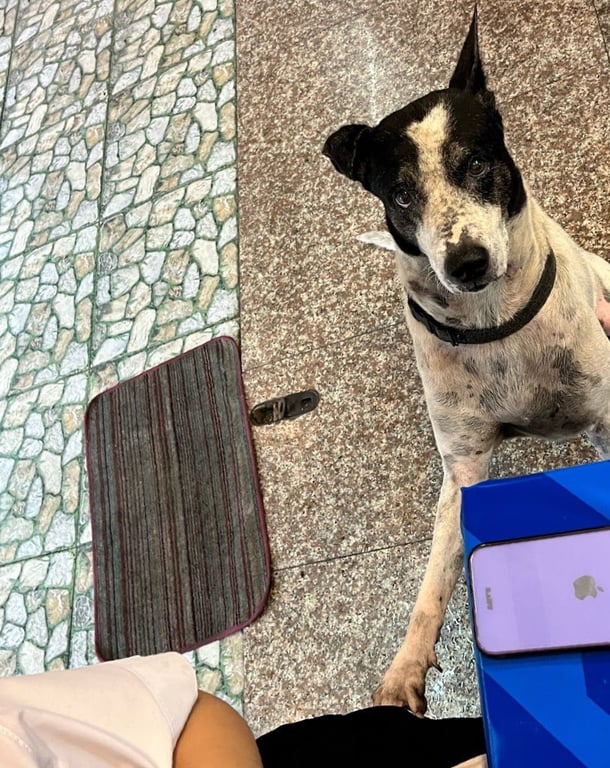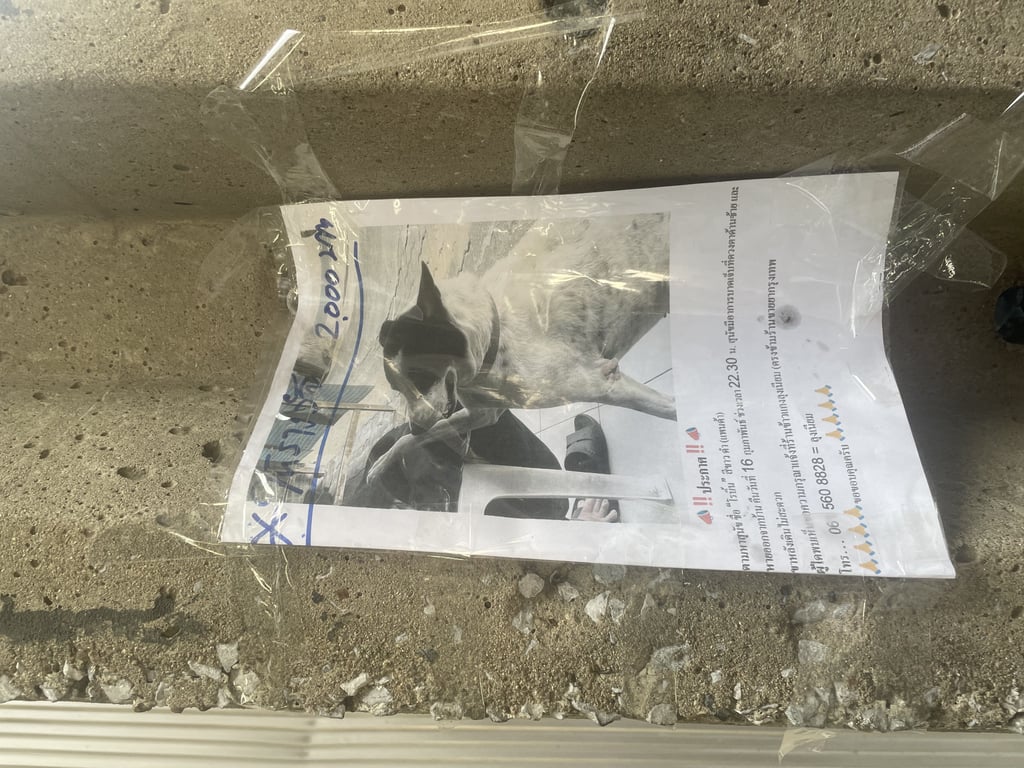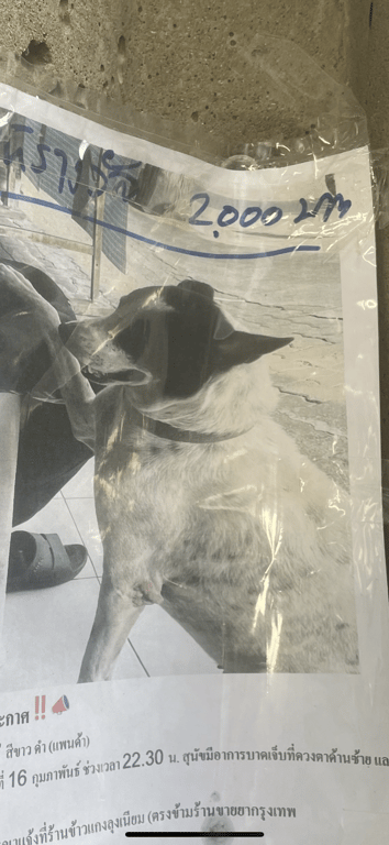 รอยตำหนิ: ตาซ้ายเจ็บ ขาหลังเดินไม่สะดวกมีปลอกคอ ตัวใหญ่ ขอมือเป็น หน้าแพนด้า