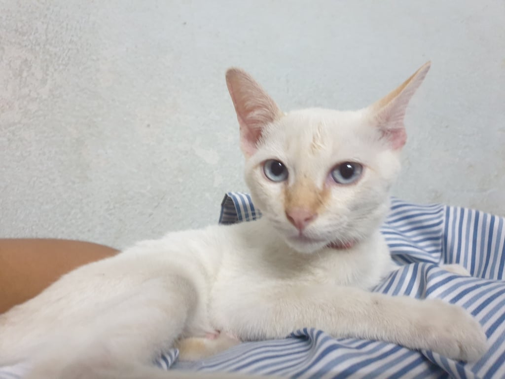 รอยตำหนิ: หางกุด ตรงหน้าผากมีรอยแผลเป็นเล็กๆเรียกชื่อได้รู้ชื่อ ขี้อ้อนจับได้ ค่อนข้างเชื่องรู้เรื่อง