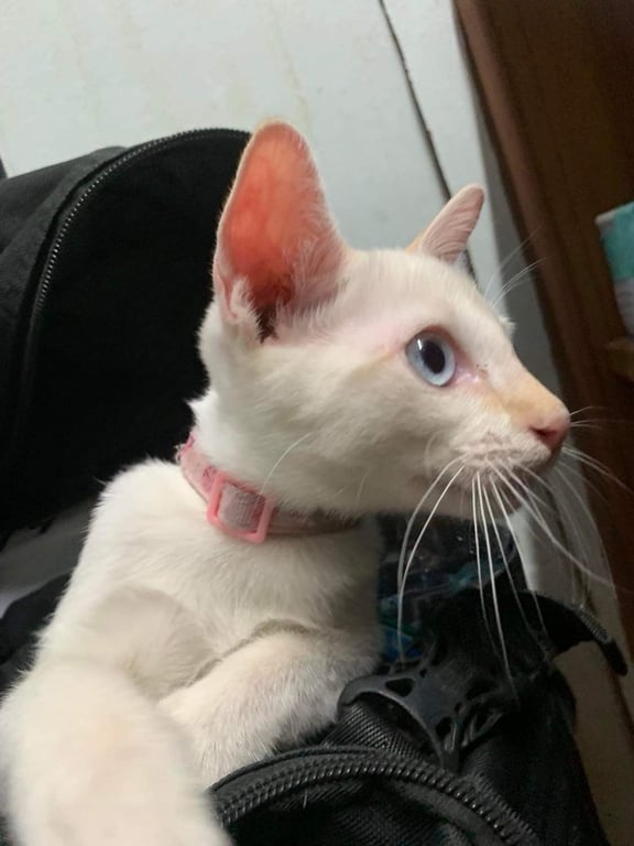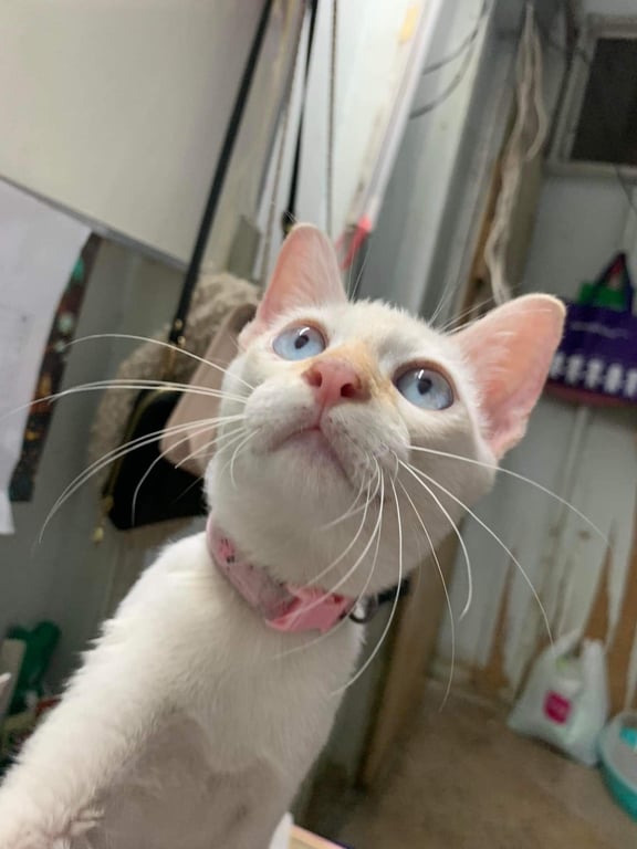 สี: สีขาว หู จมูก(มีชมพูๆปลายจมูก) หางสีออกส้มๆเหลืองๆ
