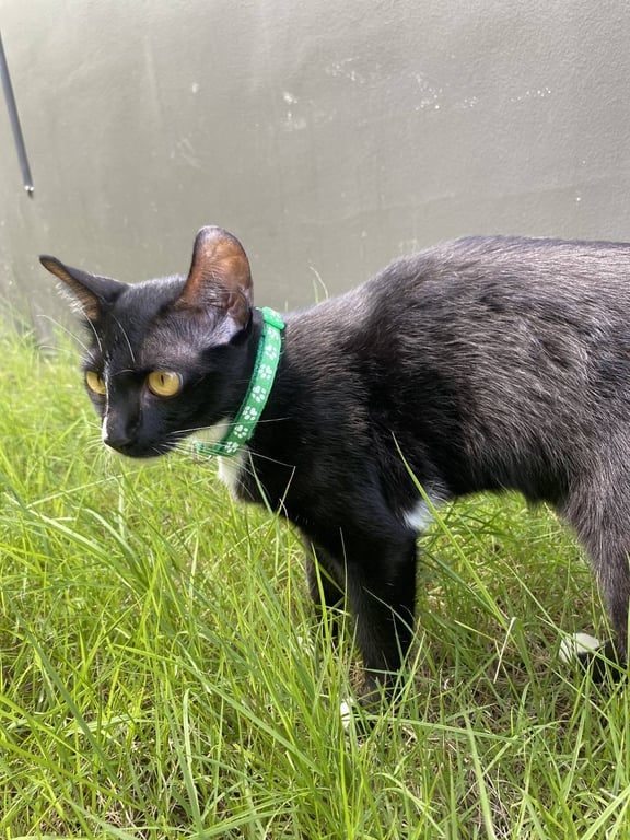 รอยตำหนิ: มีมาร์กิ้งที่จมูกครึ่งนึงเป็นสีขาวยาวลงมาที่ปาก หูบินๆ