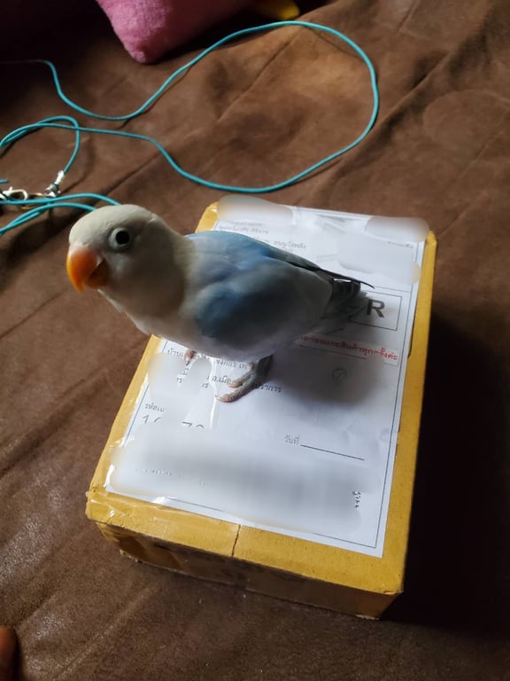 รอยตำหนิ: นกพันเลิฟเบิร์ดครับ ปากจะงอยบนด้านในแหว่งนิดมีรอยแทะน้องไม่ทราบเพศนะครับ อยู่นกวัยกำลังแทะ แต่น้องจะชอบแกะหัวคน กัดหู แทะ ไฝ ใช้เสียงนกเลี้ยงล่อได้ หาอาหารไม่เป็น ชอบแทะเมล็ดทานตะวัน