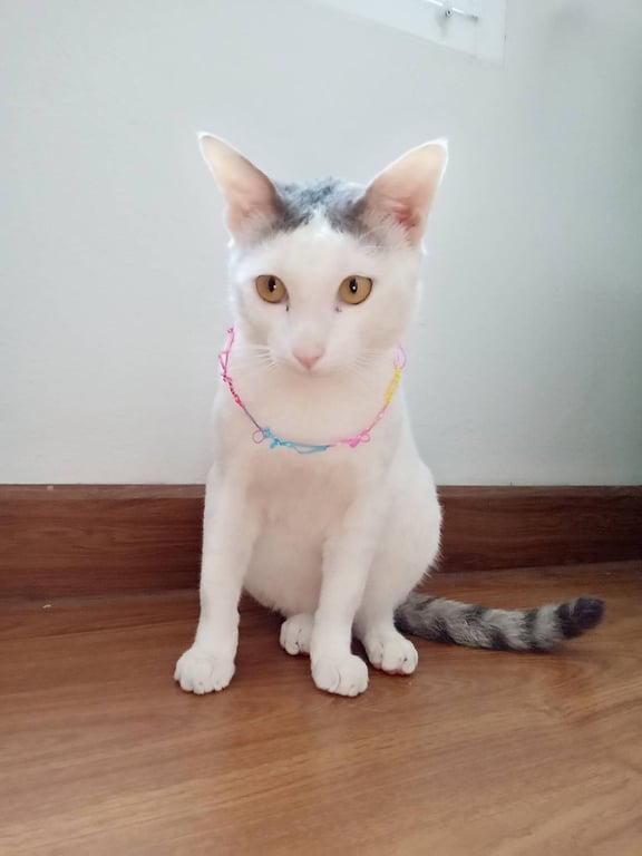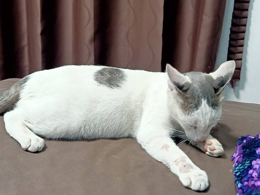 รอยตำหนิ: ข้างลำตัวด้านขวาของแมว มีจุดวงกลม ,ด้านซ้ายมีจุด2จุด เวลานั่งจะมองเห็นเป็นรูปหัวใจไม่ได้สวมปลอกคอขณะหาย
