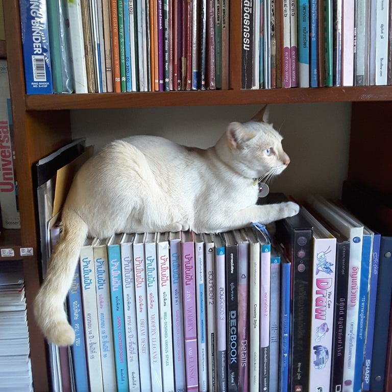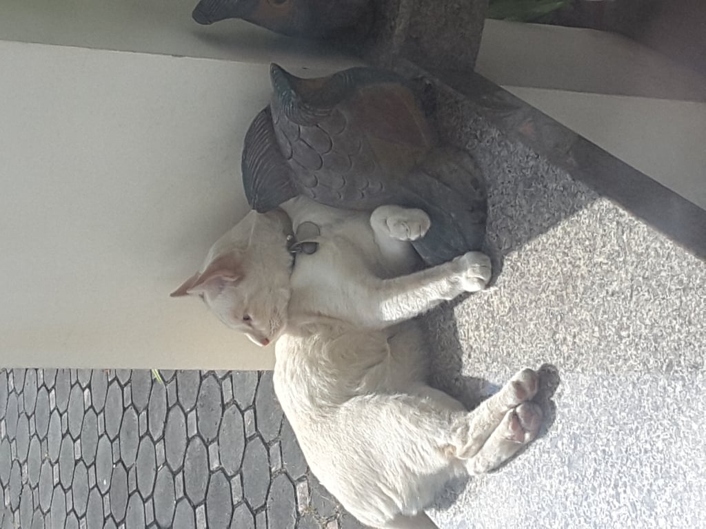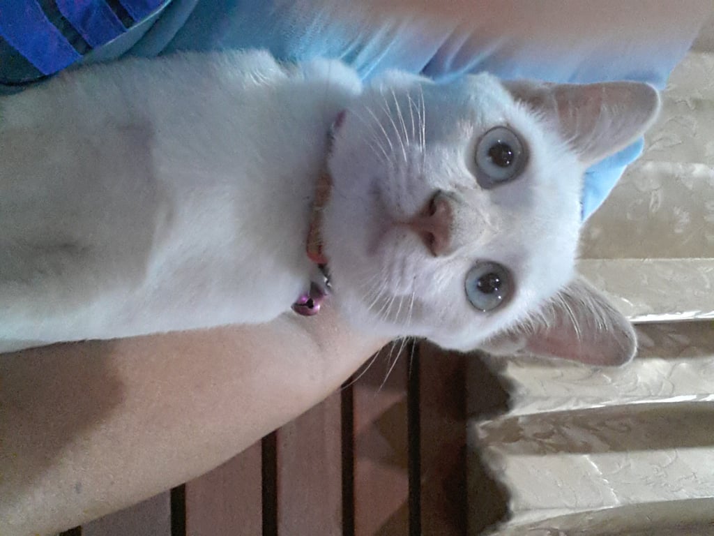 รอยตำหนิ: หางกวัก หางงอตรงปลาย-ค่อนข้าง กลัวคนอื่นๆมาก ตื่นตูมง่าย ต้องค่อยๆทำความคุ้นเคย -ชอบวิ่งเล่น ร่าเริง วิ่งบ่อย กินจุมาก -ตอนบาดเจ็บขาหลังเคยเป็นแผล กินแต่ขนมแมวเลียไม่ยอมกินอาหารเม็ด (ถ้ามี)- ปัจจุบัน แมวสวมปลอกคอ สีเขียว-ฟ้า มีป้ายชื่อ-เบอร์โทรติดต่อ Kitty - 086-1173235 กระดิ่งค่อนข้างดัง ประมาณ 5-10 เมตร