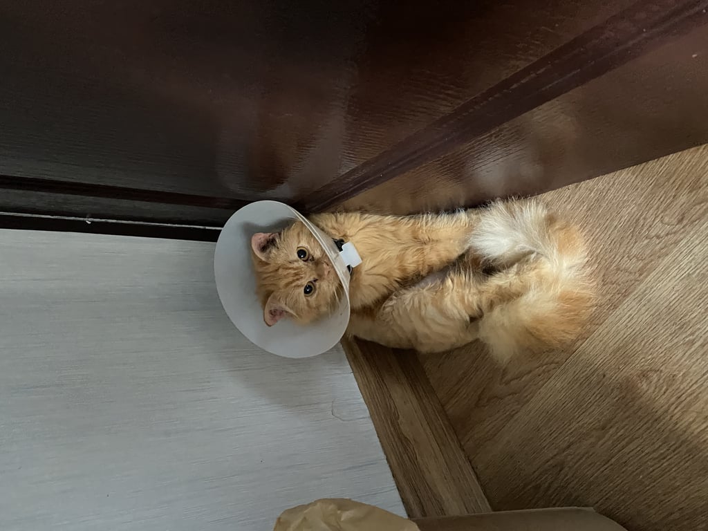 รอยตำหนิ: น้องเป็นเลื้อน ใส่คอล่าปลอกคอดำหรือสีเทา หูน้องจะเป็นแผลน้องสีส้ม ตัวเล็ก ใส่คอล่าปลอกคอสีเทาหรือดำ หูน้องจะเป็นแผล น้องเป็นเลื้อน น้องเป็นแมวไม่ค่อยส่งเสียง