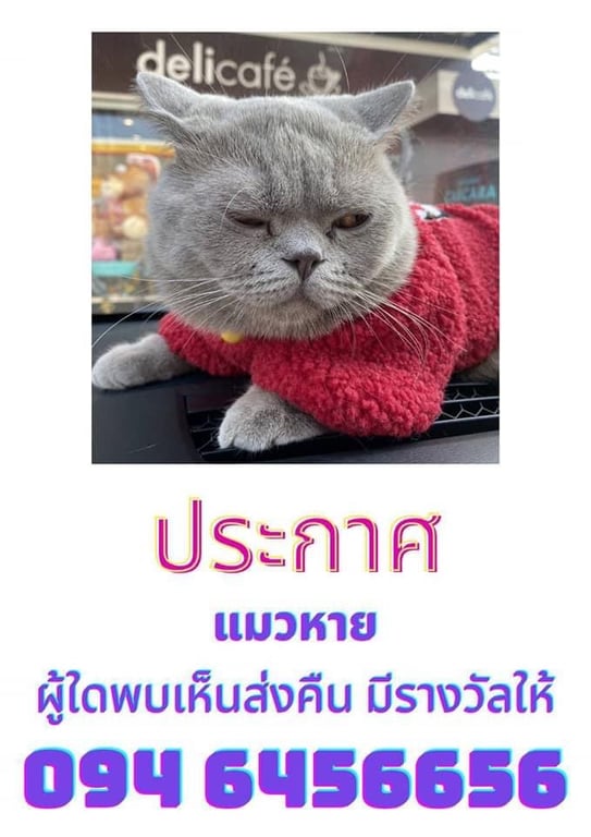 รอยตำหนิ: มีสร้อยคอสีแดง พร้อมป้ายชื่อ