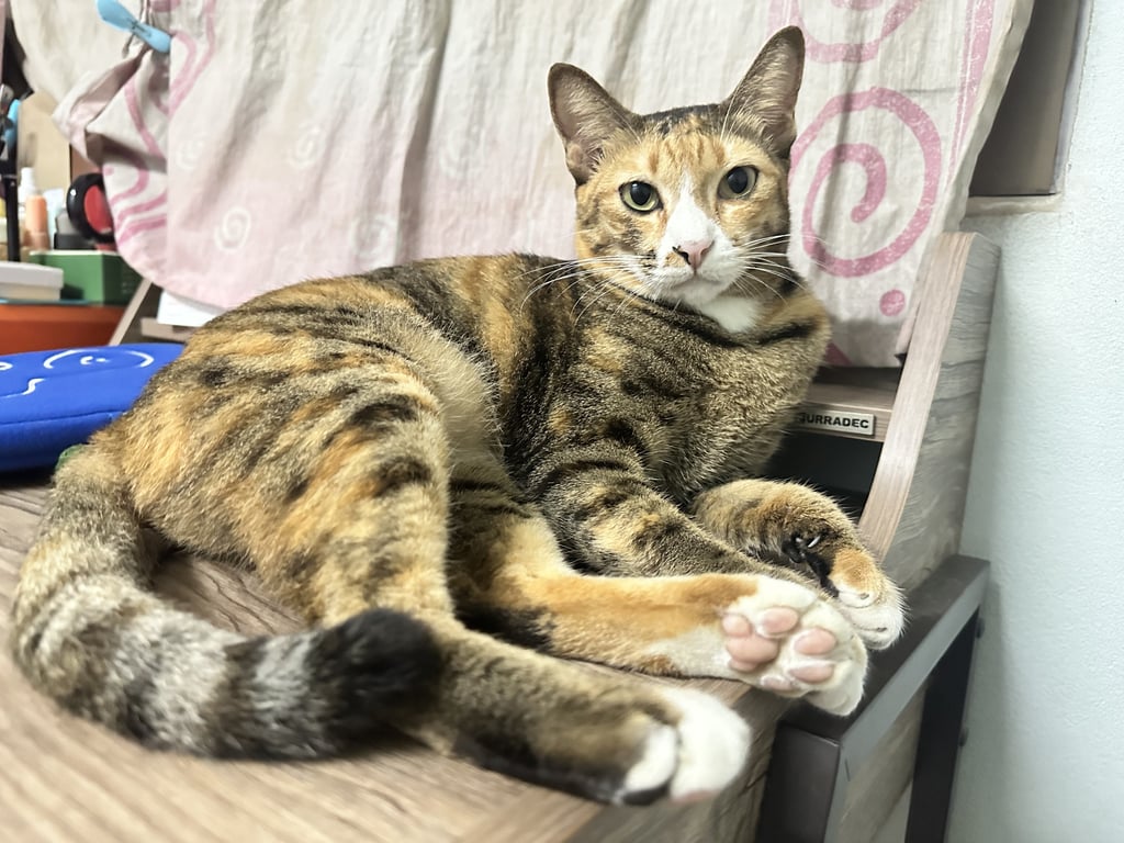 รอยตำหนิ: ตรงจมูกถึงปากมีสีขาว มีตำหนิสีน้ำตาลข้างรูจมูกขวา น้ำหนักประมาณ 4.5กิโลกรัม2 ปี
