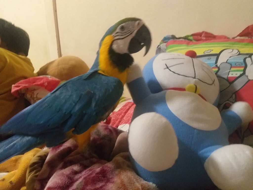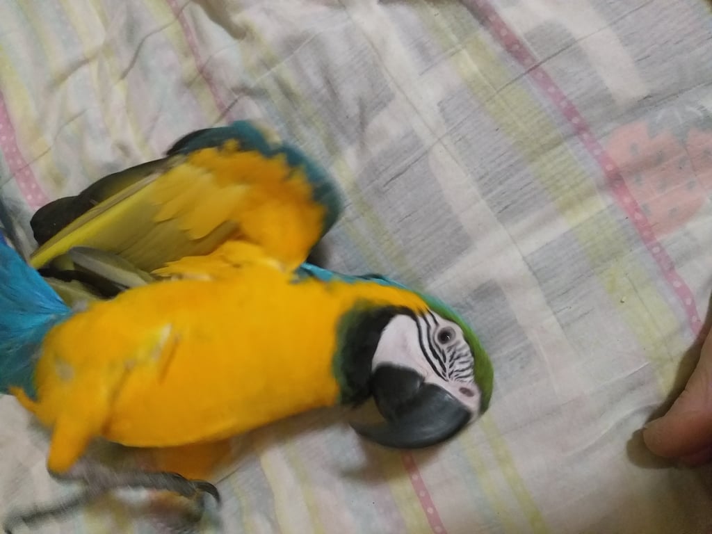 รอยตำหนิ: พี่บลูตัวใหญ่จำชื่อได้ค่ะ พี่บิ๊กตัวเล็กพี่หัดบินค่าหลุดไปสองตัวค่ะ บินไปด้วยกัน มีห่วงขาทั้งคู่ค่า