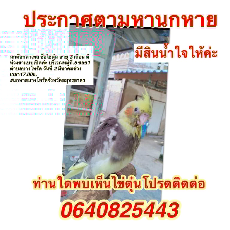 รอยตำหนิ: มีห่วงขา ชอบเรียกโทมัสๆใส่ห่วงขา