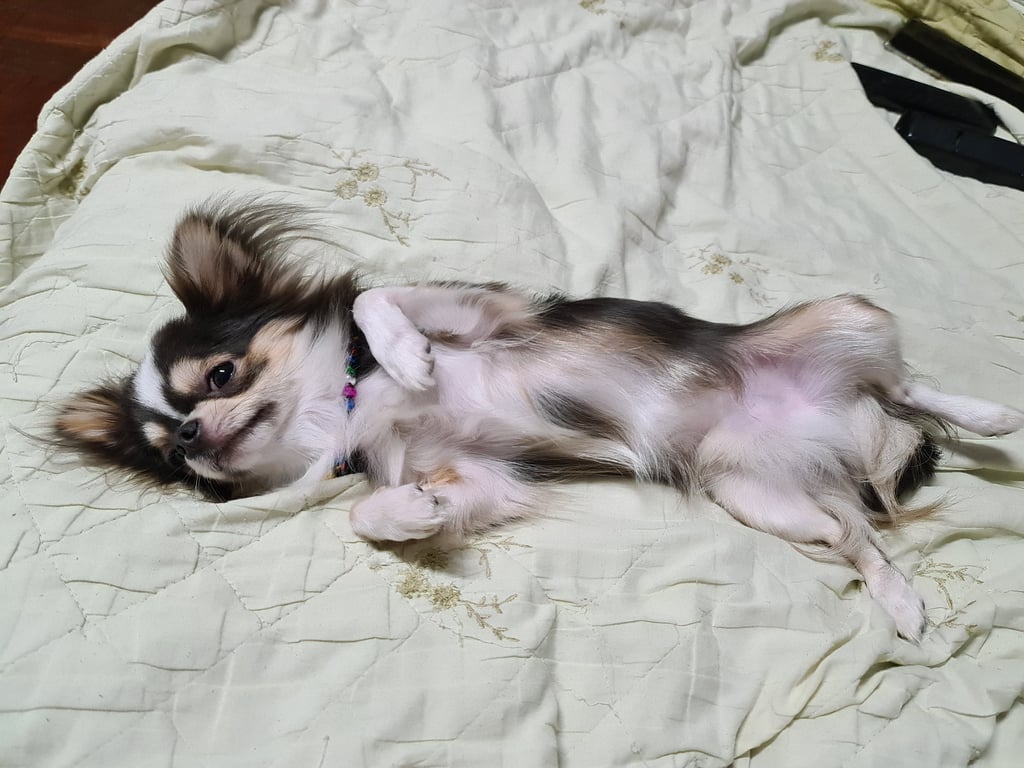 รอยตำหนิ: น้ำหนัก 2 กก. ตัวเล็กมาก น้องไม่มีไข่เป็นหมาที่เห่าเก่งมาก ชอบให้ลูบหัว เวลานอนชอบมาเหยียบหน้าอก ชอบเล่นค่อนข้างซน ไม่กลัวเสียงฟ้า แต่กลัวในสิ่งที่ไม่น่ากลัวเช่น เสียงน้ำไหลเวลากินน้ำ (เป็นแบบแกลลอนน้ำที่ไหลลงมา)