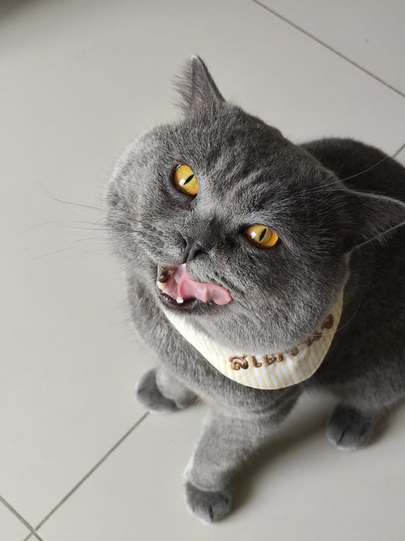 รอยตำหนิ: ตาสีเหลือง ขนสีบลู(เทา) ตรงใต้คอ(อก)และท้องมีขนสีขาวเล็กน้อยจำชื่อได้ เรียกเต้นท์จะหัน(ปกติ) แต่ถ้าอยู่ในสถานที่อื่น อาจจะกลัว ไม่หัน เลี้ยงระบบปิดมาตลอด