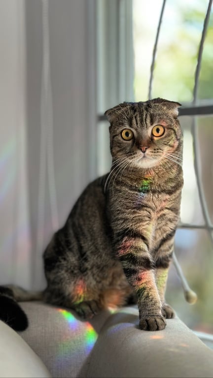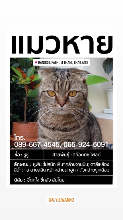 รอยตำหนิ: หูพับ(ดีด)นิสัยขี้กลัว ตกใจง่าย สันโดษ(เข้ากับแมวตัวอื่นไม่ค่อยได้)