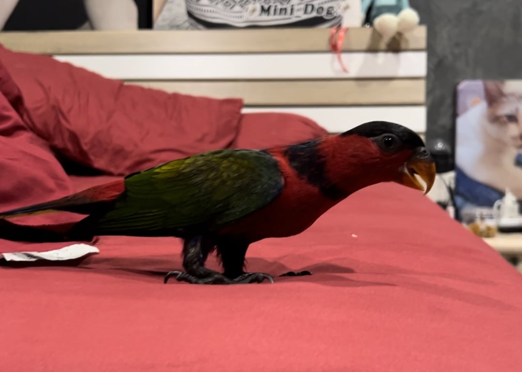 รอยตำหนิ: ขนหน้าอก มีห่วงขา2ข้างเวลาอยู่ในกรงขี้เล่น ชอบเรียนแบบเสียง หัวเราะได้