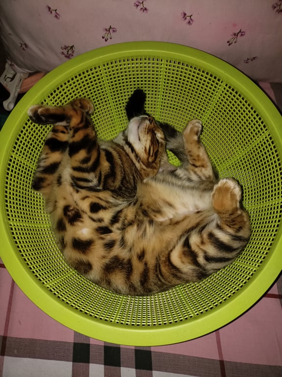 รอยตำหนิ: ตัวยาว ไม่อ้วน ใส่สร้อยคอสีเขียว กระดิ่งแดงไม่กลัวคน แต่ไม่ชอบให้อุ้มจะดิ้นลง ชอบกินอกไก่มาก ชอบกินนม ไม่ชอบถูกขัง ชอบลานกว้างๆวิ่งเล่น นิสัยน่ารักไม่ดุ