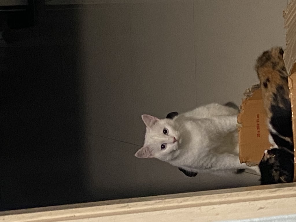 รอยตำหนิ: น้องยัวะใส่ปลอกคอสีส้ม น้องเพราะ หน้าตาจะเป็นแมวเศร้า ตาสีฟ้าน้องเป็นแมวน่ารัก เรียกง่าย เรียบร้อย ตัวสีขาวแต่ชอบไปเล่นคลุกฝุ่นจนม่อมแมม