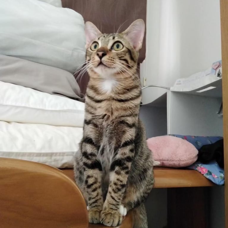 รอยตำหนิ: ใส่ถุงเท้า 2 ขาหลัง ปลายหางงอ ตัวเล็กตกใจง่าย