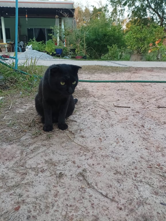 รอยตำหนิ: หูพับ(ไทยผสมสก๊อตติช) หางยาวตรง ขนเงา อ้วน วันที่หายใส่ปลอกคอสีฟ้าขี้อ้อน พูดเก่ง แต่ขี้กลัว