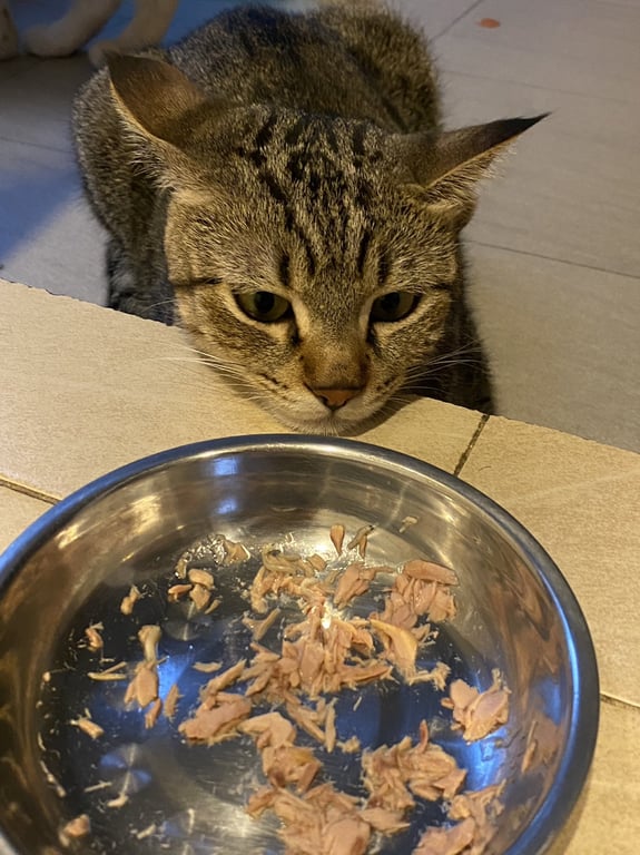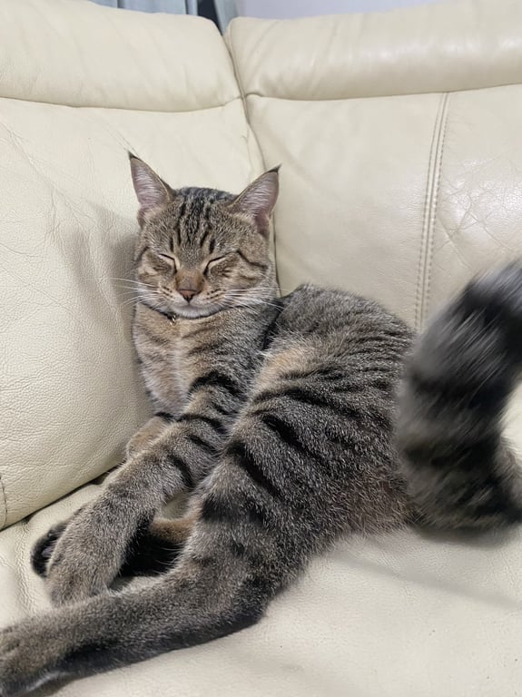 สี: ลายเสือ,ไม่มีปลอกคอ,หางสั้นกว่าเเมวปกติ,หูมีขน