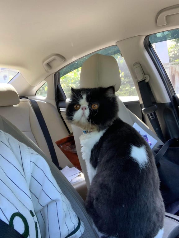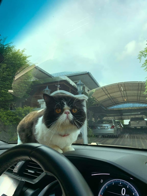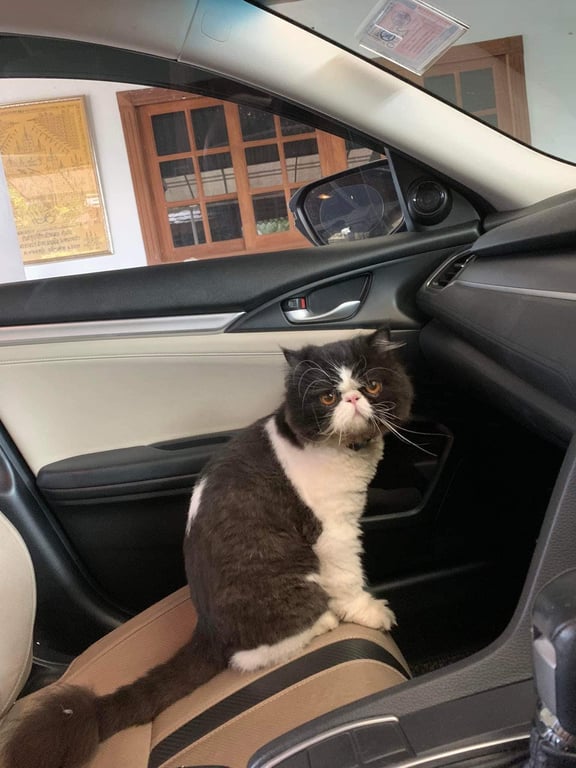 รอยตำหนิ: มีลายดำคาดขาวที่หน้า จุสีขาวที่ขนกลางหลังนิสัยขี้กลัว ร้องเสียงเบาๆ ถ้าอยู่ในบ้านจะขุดประตูขอออกนอกบ้านบ่อยๆ อยากรู้อยากเห็น ชอบเล่นกับแมลง