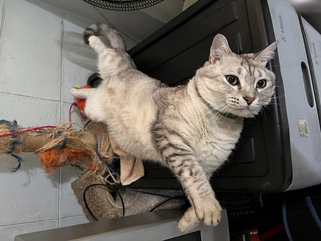 รอยตำหนิ: มีปลอกคอสีรุ้ง ตัวใหญ่น้องขี้กลัว แต่สามารถจับตัวได้ เชื่องกับทุกคน