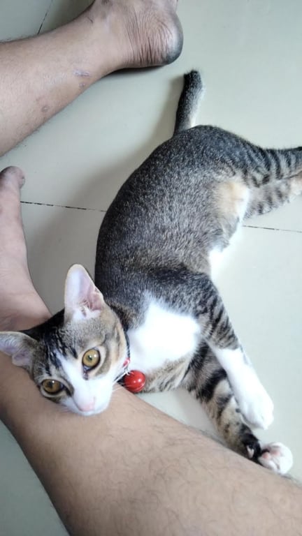 รอยตำหนิ: ปลอกคอสีแดง กระดิ่งลูกใหญ่สีแดง ปลายหางคด(จะต้องจับดูมองด้วยตาเปล่าจะไม่เห็นว่าคด) จมูกสีชมพูนิสัยขี้เล่น ตกใจง่าย เป็นมิตรกับคน