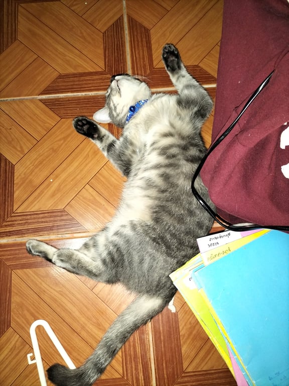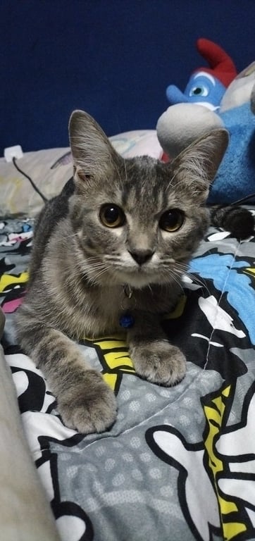 รอยตำหนิ: ตาสีเหลือง ปอกคอสีน้ำเงิน กระดิ่ง2ลูก สีเหลือง-ชมพูไม่ค่อยเข้ากับแมวอื่น ขี้กลัว ตกใจเสียงดังๆ