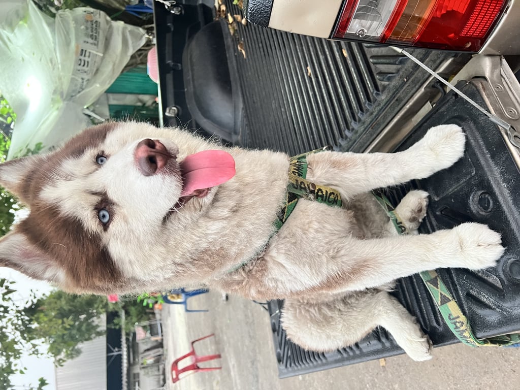 รอยตำหนิ: น้องเพิ่งตัดขนไปตรงโคนหางด้านบนมีแผลอายุประมาณ2-3ขวบ น้องนิสัยขี้เล่น เล่นได้กับทุกคน ไม่กัด น้องไปข้างหน้าอย่างเดียว กลับบ้านไม่เป็น