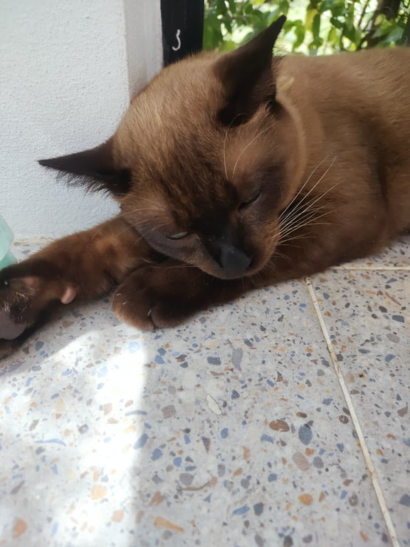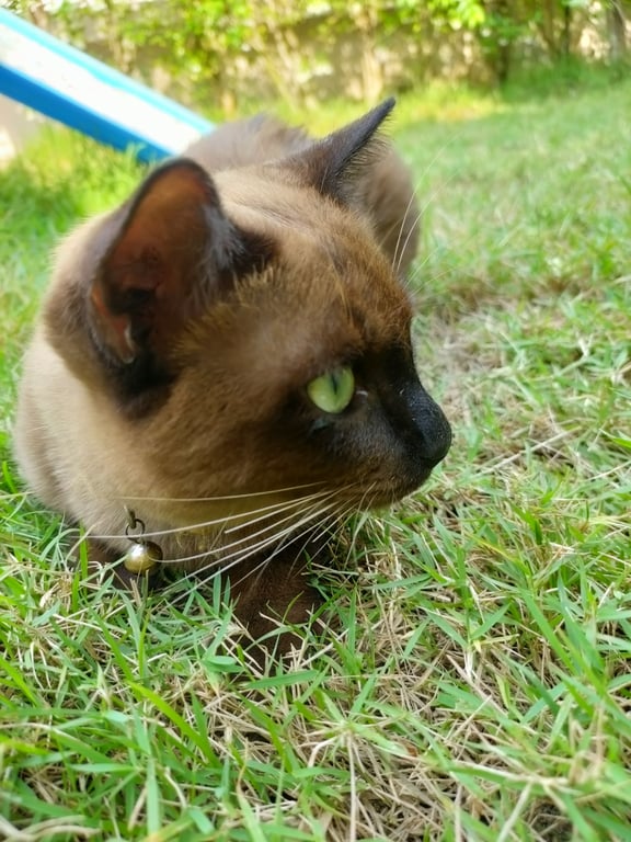 รอยตำหนิ: หางยาว มีปลอกคอสีส้ม มีชื่อโกโก้และเบอร์โทรสีน้ำตาลแดง หน้าสีเข้ม คล้ายแมวโคราช