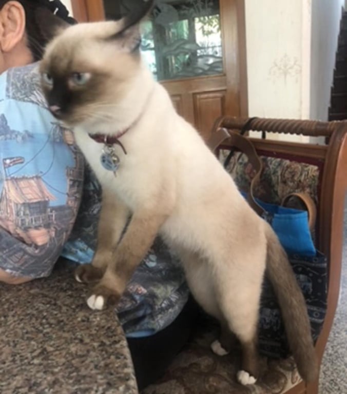รอยตำหนิ: จมูกมีรอยตำหนิ (ตัวใหญ่)ใส่ปลอกคอสีเขียว มีจี้รูปปลา ระบุชื่อและเบอร์โทรชัดเจน พบเจอ หรือนำส่งมีสินน้ำใจให้ 5,000 บาท