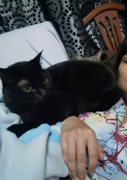 รอยตำหนิ: ใส่ปลอกคอสีชมพูมีกระดิ่งแมวขนสีดำยาว ขนนิ่มมาก ขี้ตกใจ ถ้าเรียกชื่อสามารถจับตัวได้ถึงแม้ไม่ใช่เจ้าของ